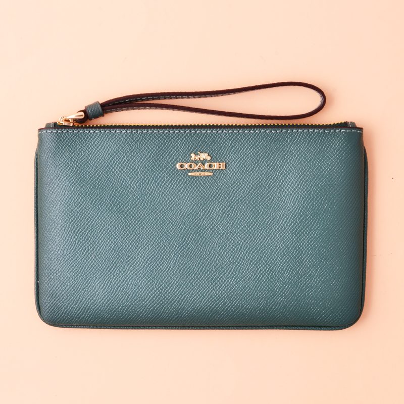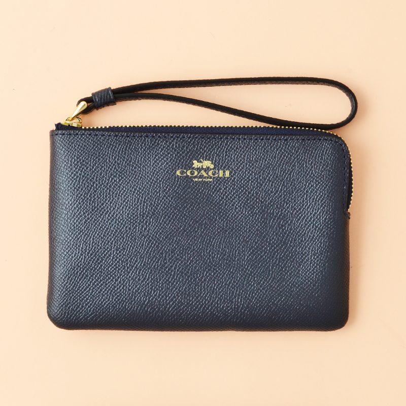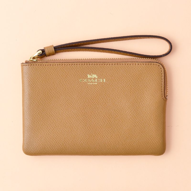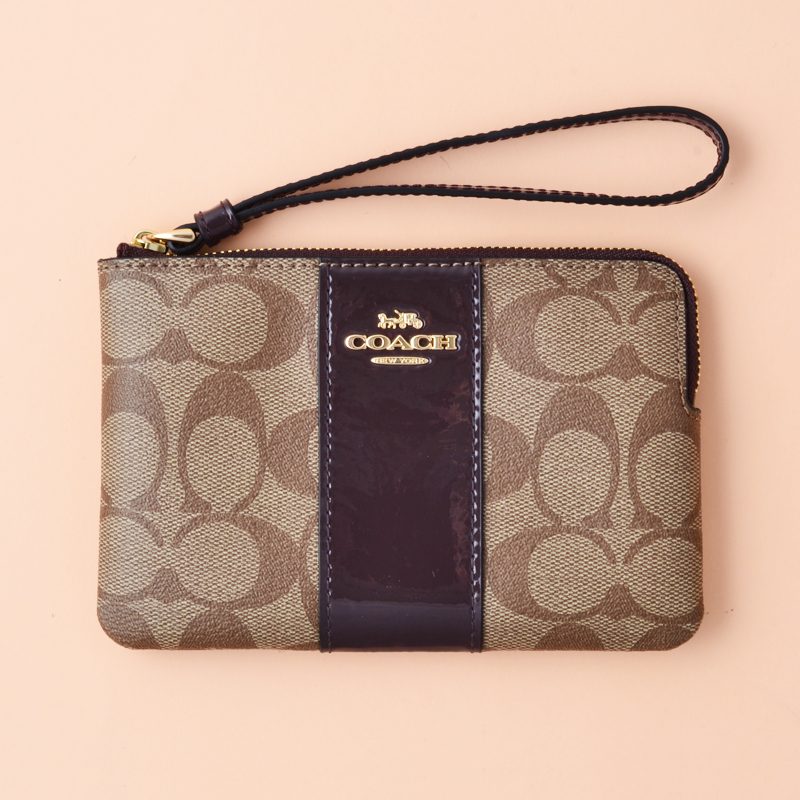 Coach Corner Zip Signature Canvas Wristlet Khaki Oxblood