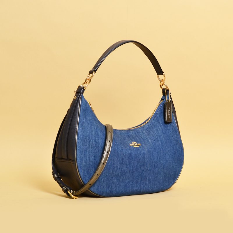 Denim and polished pebble leather