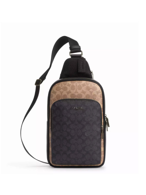 Coach Ethan Pack In Blocked Signature Canvas Tan Charcoal Black