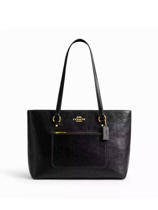 Coach Station Tote Bag In Signature Leather Black Gold