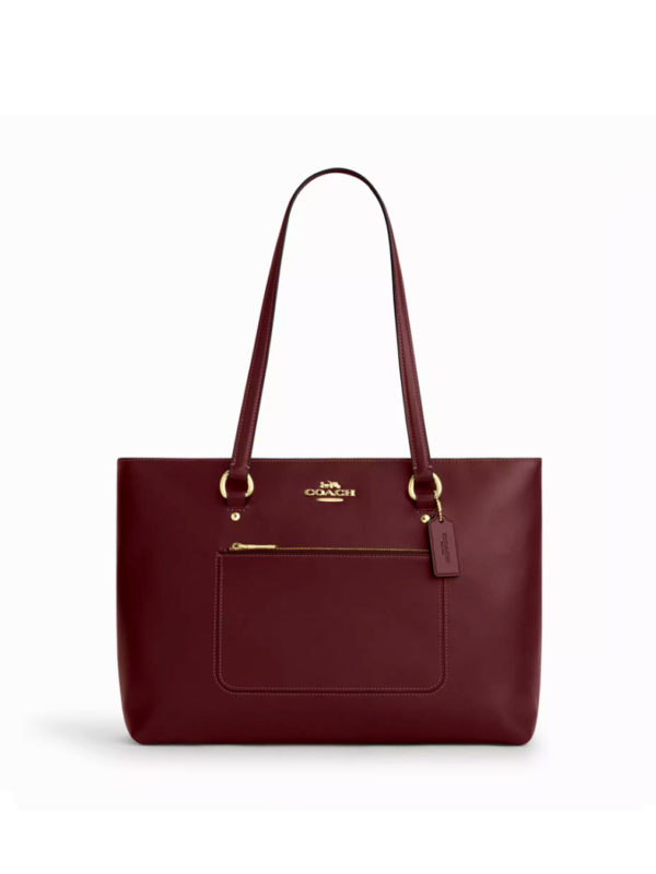 Coach Station Tote Bag Smooth Leather Gold Maroon